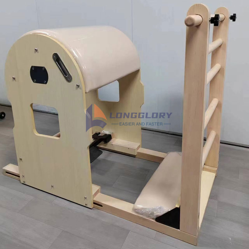 4. Стълба Барел: Структурна иновация: Базирана на извито тяло на кофа, комбинирано със стълба с регулируема височина, създавайки динамично пространство за разтягане.