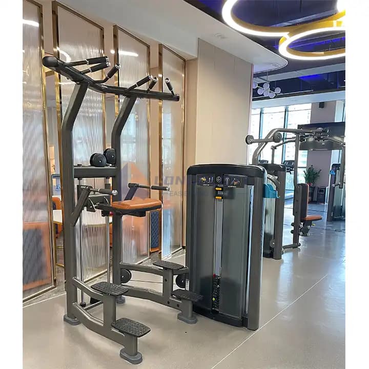 Отличаващ се с гладка система за натрупване на тежести, асистиращата машина за потапяне на брадичката позволява на потребителите бързо да регулират съпротивлението, което я прави подходяща за всички нива на фитнес. Начинаещите могат да тренират с опора, за да изградят сила постепенно, докато напредналите потребители могат да намалят помощта, за да изпълняват спускане на цялото телесно тегло и набирания на брадички.