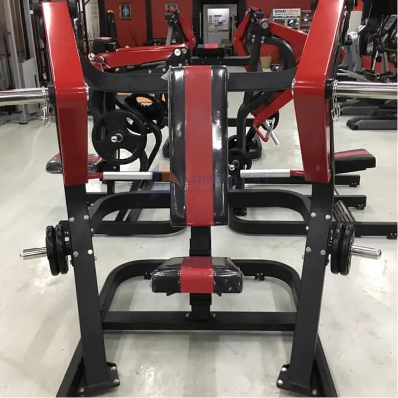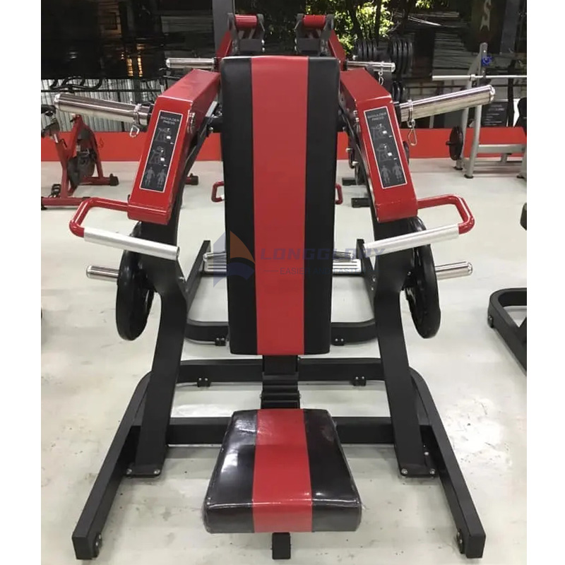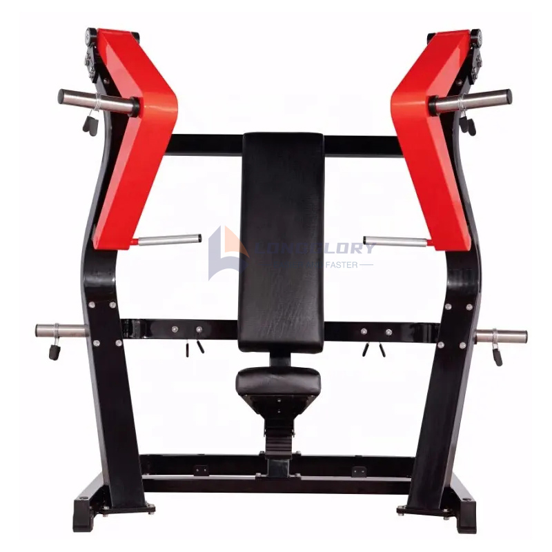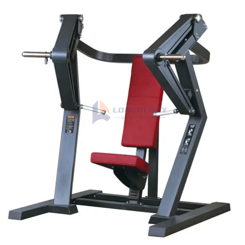 LongGlory Plate Loaded Chest Press Machine, използваща тежести за регулиране на интензитета и силата на тренировката, е удобна и може да вземе предвид нуждите на тренировката на различни хора от фитнес залата и фитнес ентусиастите. Машината е изработена от висококачествена стоманена тръба с дебелина 3 мм с гладки заварки. Боядисаното покритие е с тройно покритие за гладко, устойчиво на корозия покритие, което значително удължава живота на машината за гърди с плоча.