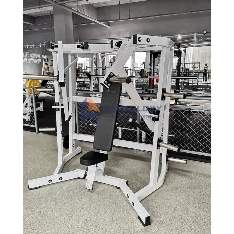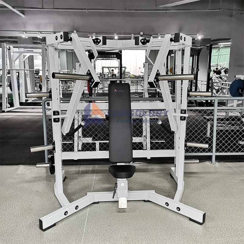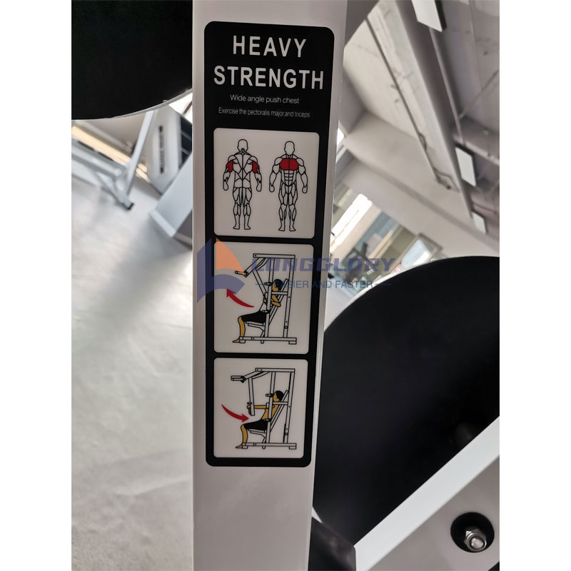 Изо-латералната машина за широка преса за гърди позволява по-голям обхват на движение и може да упражнява гръдните мускули много ефективно. Тъй като използва плочи за тежести, можете да регулирате съпротивлението чрез регулиране на теглото. Изо-латералната машина за широка преса за гърди е толкова безопасна, че можете да тренирате без наблюдатели.